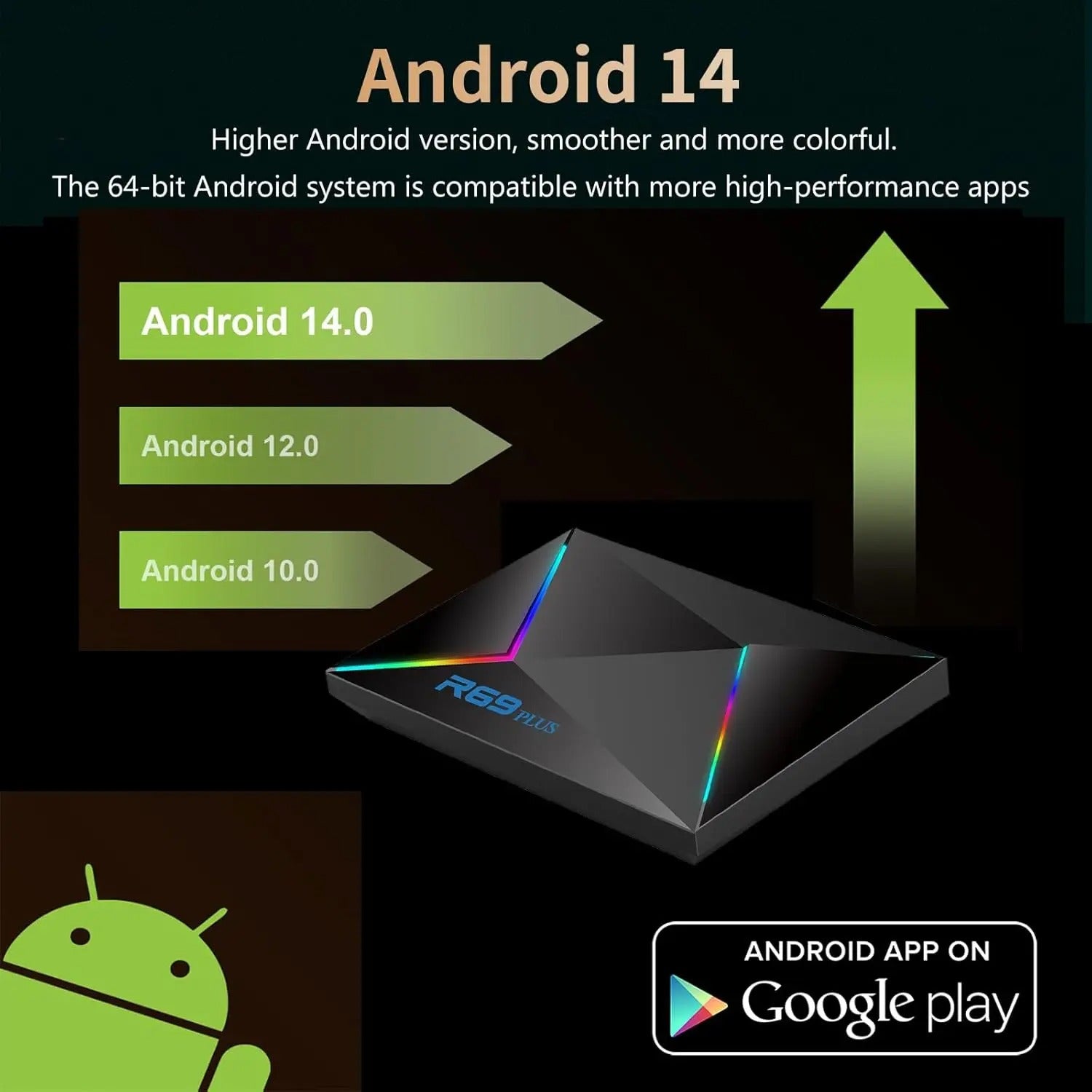 1 x ТВ-приставка R69 Plus (Android 14.0, 4 ГБ/64 ГБ)